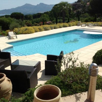 Set in a flower-filled setting, the pool is surrounded by a 200 m² pool area with deckchairs and sun umbrellas.